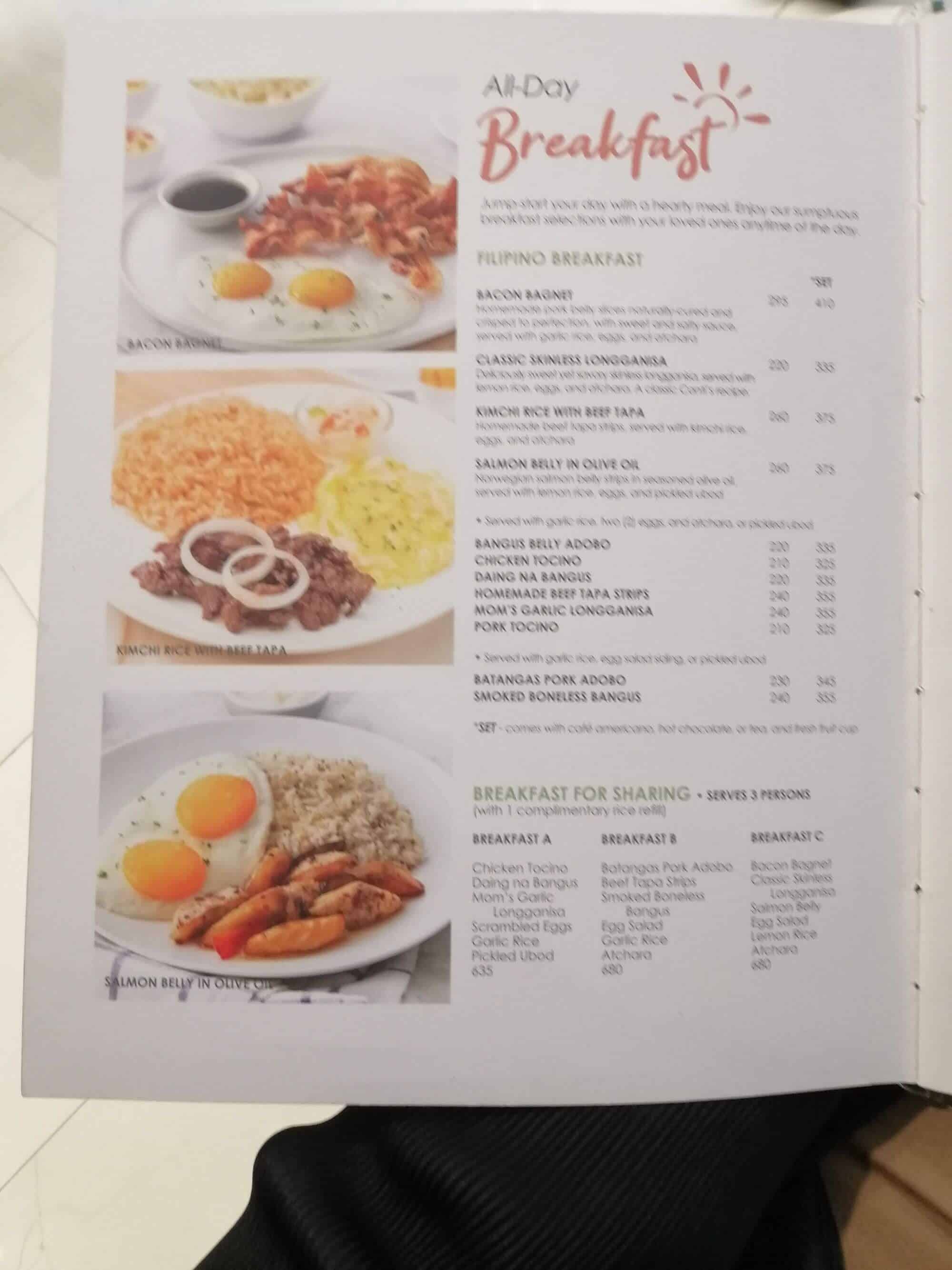 Conti’s restaurants offer a variety of dishes that are available from morning until night. They have all-day breakfast and brunch options ranging from continental to Filipino, and there are breakfast combo sets that can feed up to three diners.
