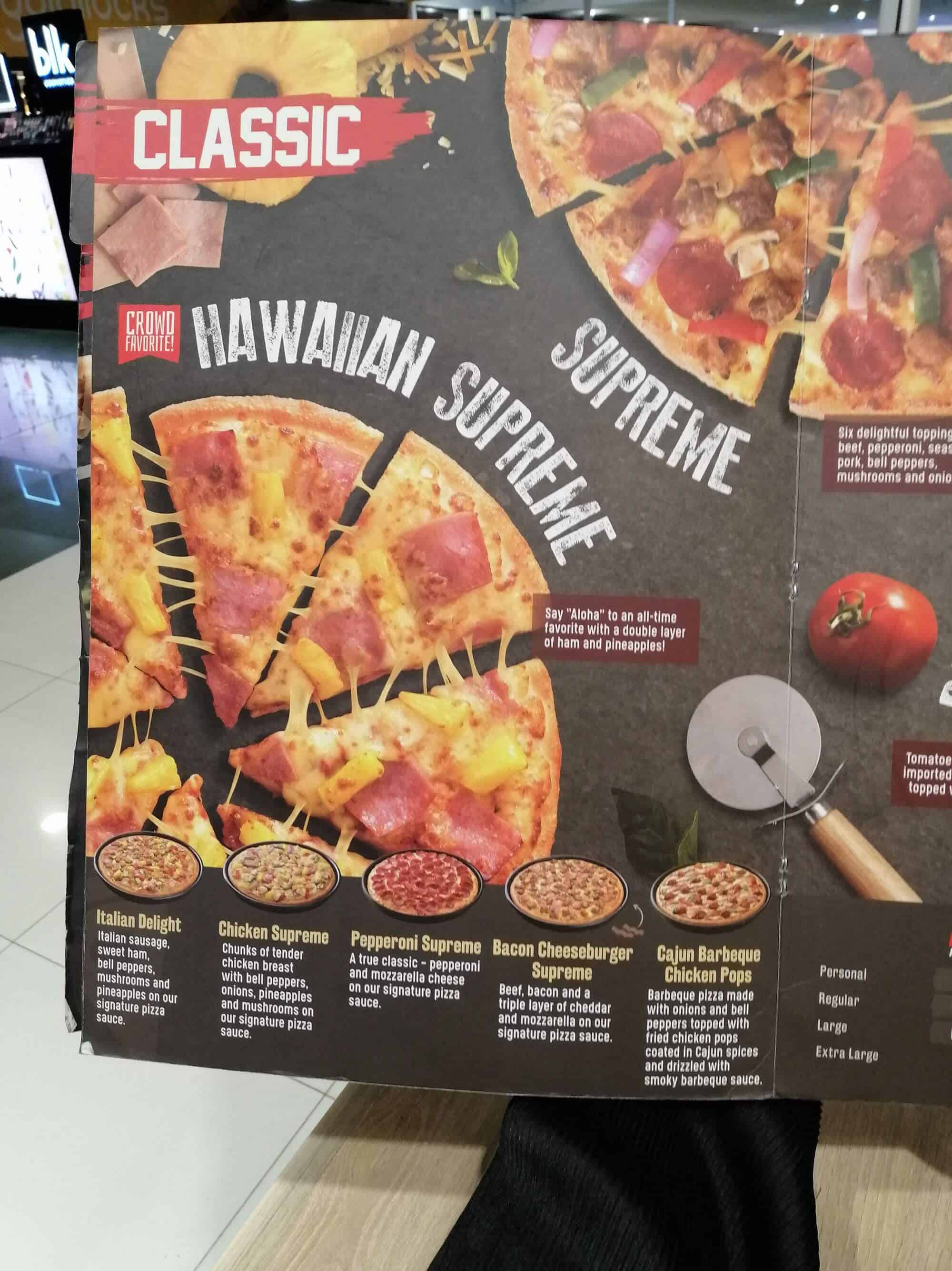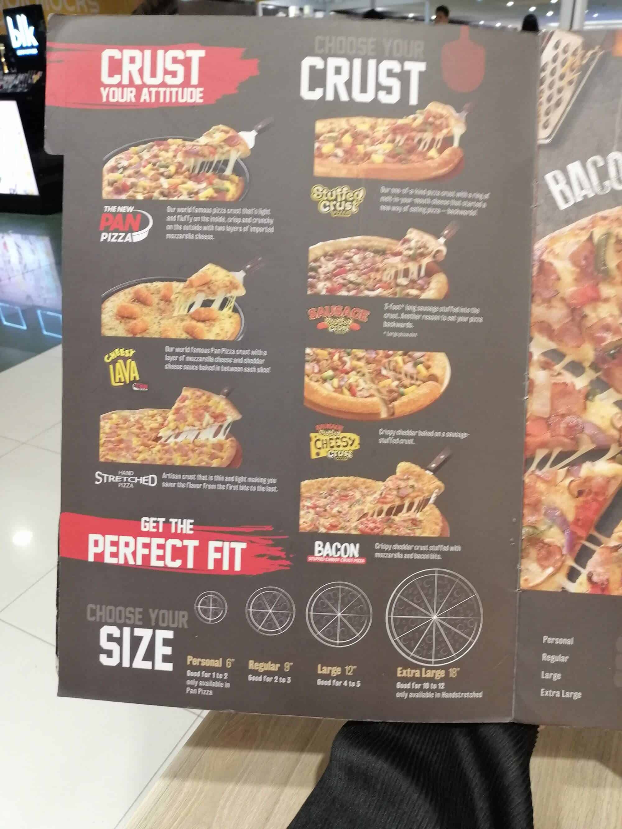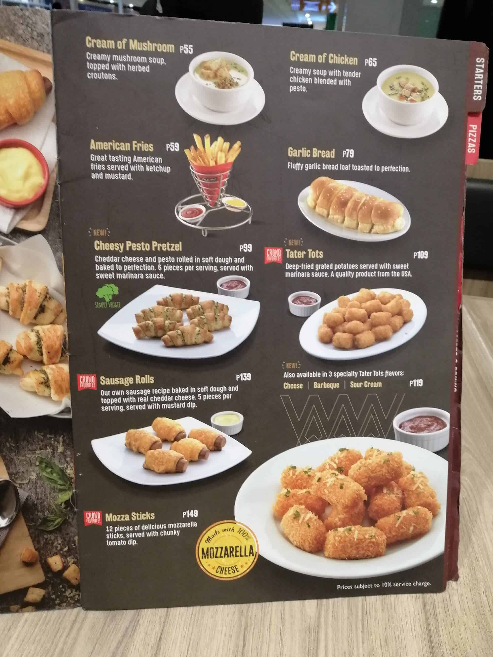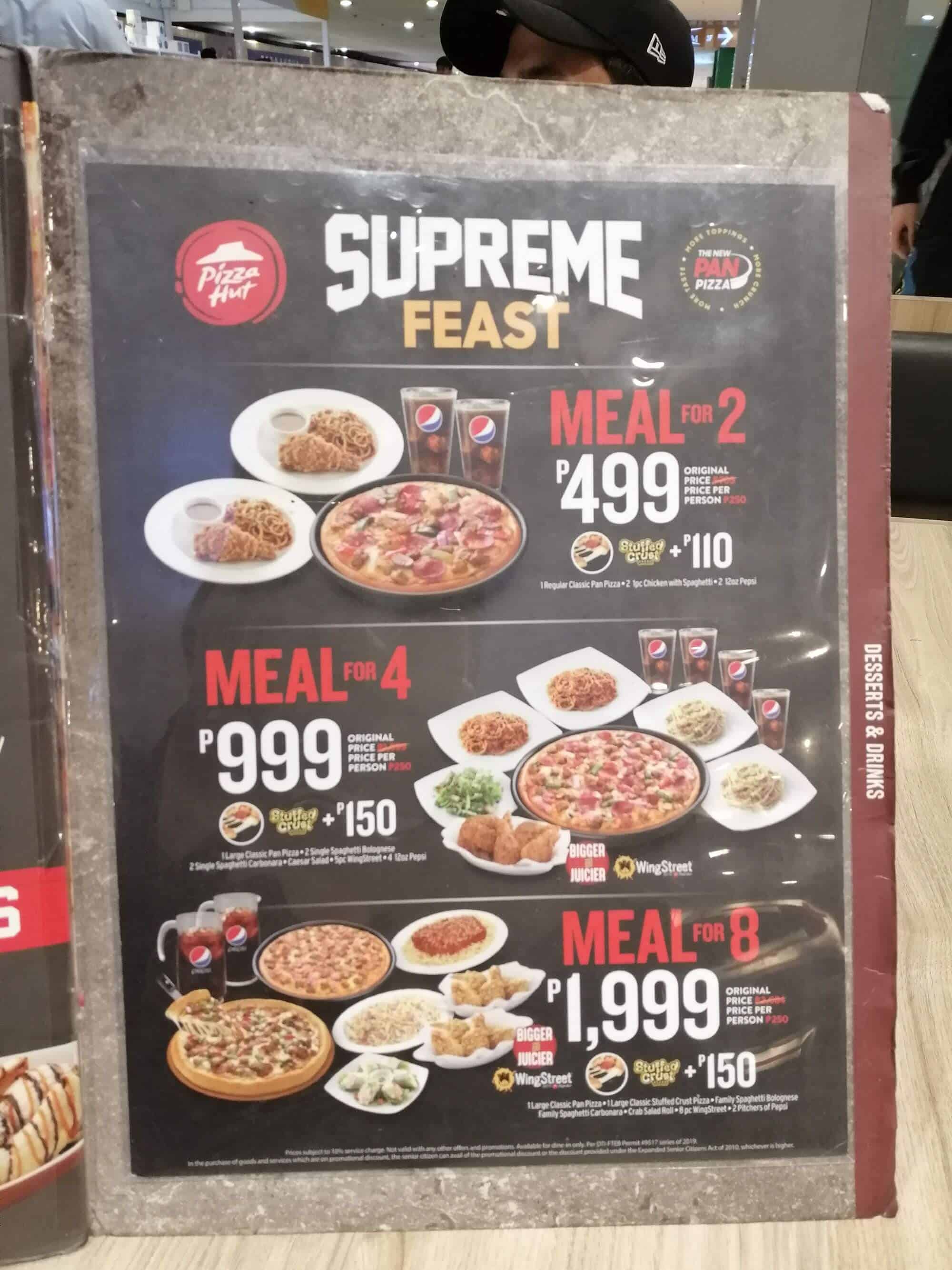 Here is the latest Pizza hut menu with prices in the Philippines: